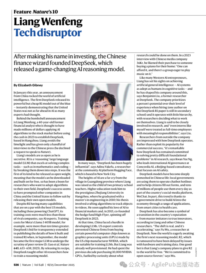 DeepSeek创始人梁文锋入选:在投资界一举成名后,这位中国金融奇才成立了DeepSeek,并发布了一款颠覆性的AI推理模型。
