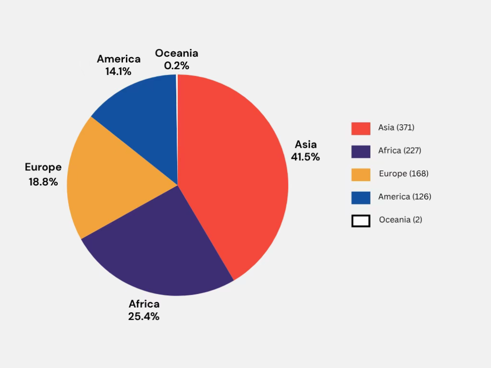 今年的主题在全球引起了共鸣,吸引了来自不同地区的广泛参与。从超过894份公开投票结果中可以清楚地看见,国际社会对AI如何影响同行评审抱有广泛兴趣。其中亚洲参与票数占比最高,体现了大陆对此议题的深入关注。如图2所示,非洲和欧洲也表现出了明显的代表性,表明人工智能在学术评估中带来的挑战与机遇具有广泛性。美洲(包括北美与南美)和大洋洲也均发出了自己的声音。这种广泛的地域参与,不仅突显了“人工智能时代下同行评审再审视”的全球相关性,也真正强调了这场关键对话中贡献多元视角的价值。