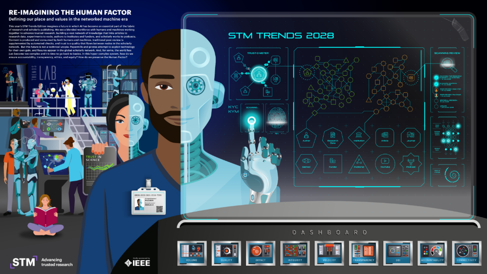 2024 年,STM(International Association of Scientific, Technical and Medical Publishers,国际科学、技术与医学出版协会)发布了趋势报告 STM Trends 2028,主题为 “RE-IMAGINING THE HUMAN FACTOR: Defining our place and values in the networked machine era”(重新构想人类因素:在网络机器时代定义我们的位置和价值)。