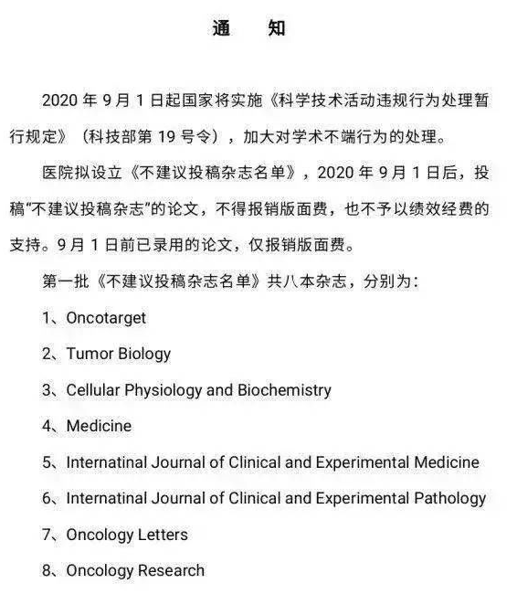 浙江大学第一附属医院公布“不建议投稿期刊”