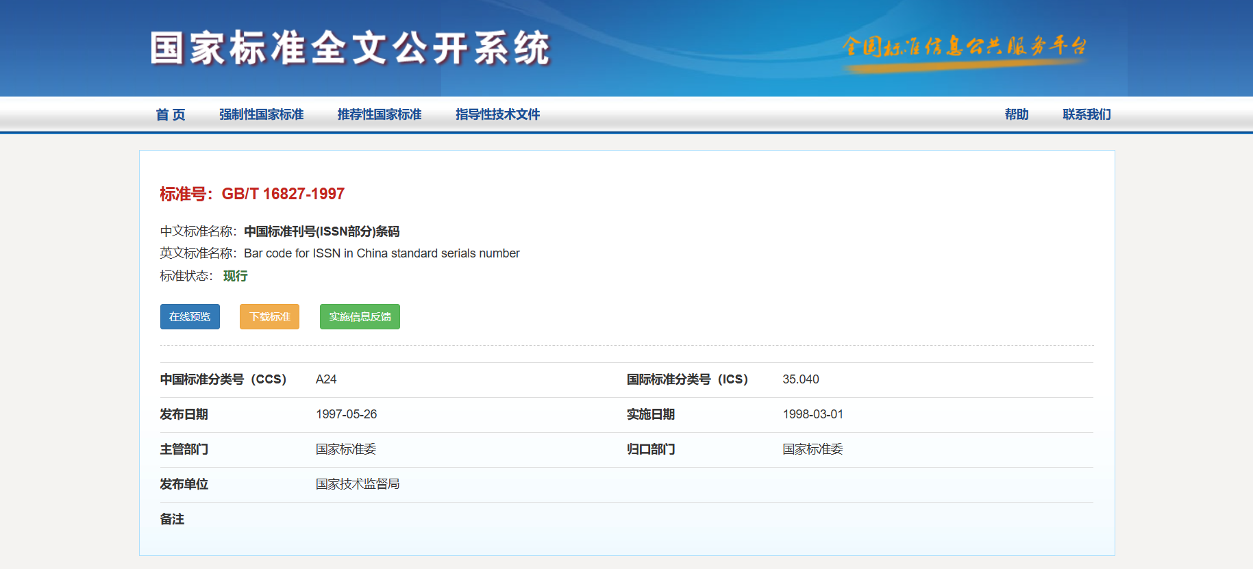 本标准起草单位:中国物品编码中心、ISSN中国国家中心。