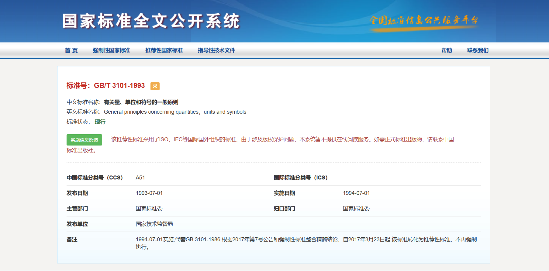 官方网站:国家标准|GB/T 3101-1993