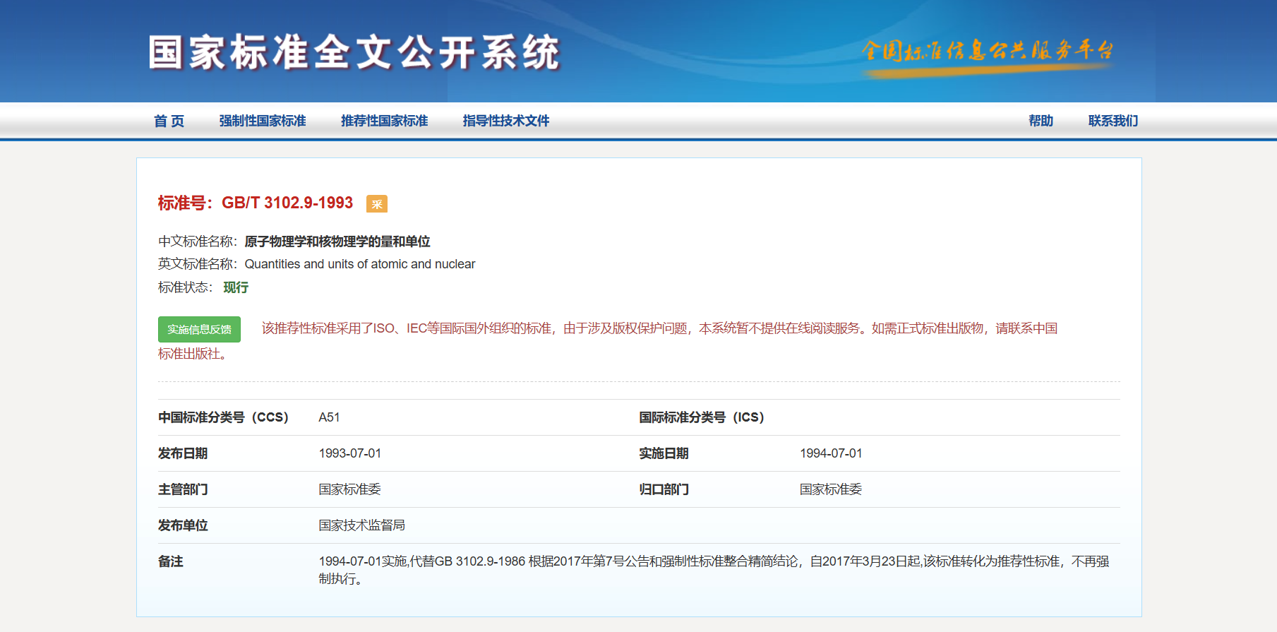 下载链接:原子物理学和核物理学的量和单位:GB 3102.9—1993