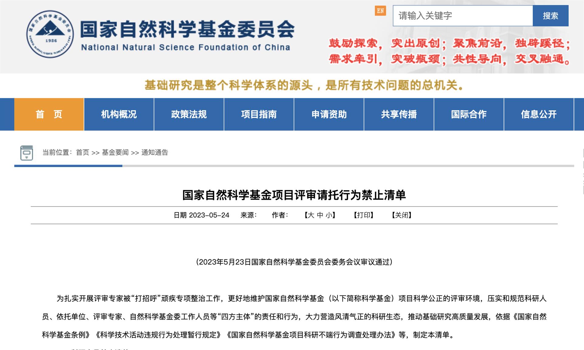 为扎实开展评审专家被“打招呼”顽疾专项整治工作,更好地维护国家自然科学基金(以下简称科学基金)项目科学公正的评审环境,压实和规范科研人员、依托单位、评审专家、自然科学基金委工作人员等“四方主体”的责任和行为,大力营造风清气正的科研生态,推动基础研究高质量发展,依据《国家自然科学基金条例》《科学技术活动违规行为处理暂行规定》《国家自然科学基金项目科研不端行为调查处理办法》等,制定本清单。